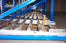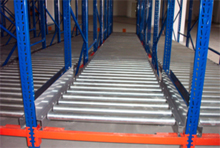 該型貨架采用重力式輥筒輸送機(jī)作為貨架的主要部件,物品通過(guò)輥道自動(dòng)從末端移動(dòng)到前端,配合自動(dòng)堆垛機(jī),升降臺(tái)或高位叉車作業(yè),具有品種區(qū)別明顯、物品先進(jìn)先出、空間利用率高等顯著優(yōu)點(diǎn)。